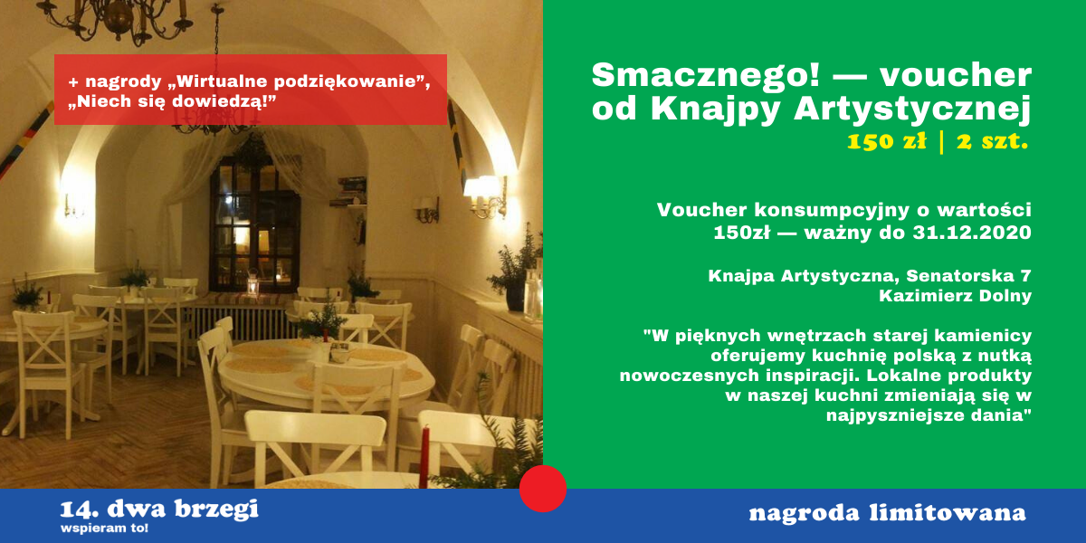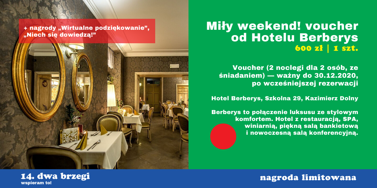 Nagrodę możesz wybrać pod adresem: www.wspieram.to/dwabrzegi2020.