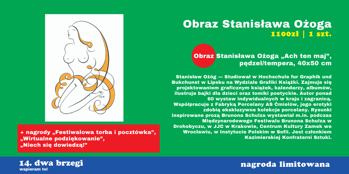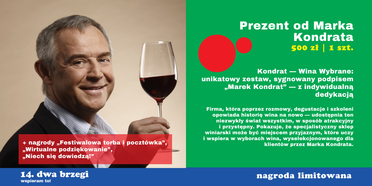 Pozostajemy do dyspozycji — jeżeli macie pytanie lub chcielibyście dowiedzieć się więcej o konkretnej nagrodzie lub sposobie jej realizacji, piszcie do nas śmiało na adres: wspieram@dwabrzegi.pl.